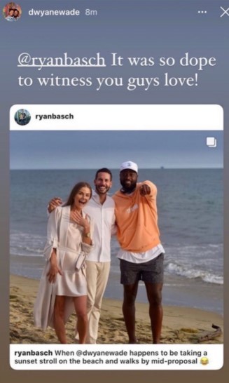 韦德随后转发了该照片,并表示:“能够见证你们的爱情真是太酷了。”